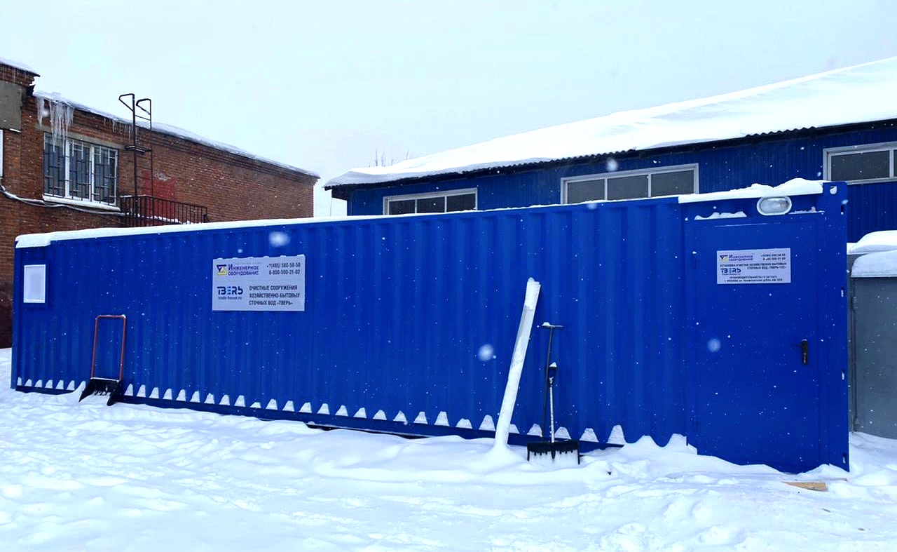 Станция очистки бытовых сточных вод "ТВЕРЬ-1,5С" представляет из себя утепленное здание из блок-модулей, установленных на фундаменте, со всем технологическим оборудованием внутри.
